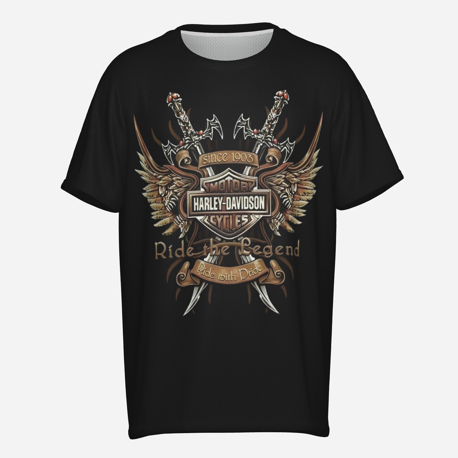 Harley Davidson Men's O Neck T-Shirt-Reinforced Neckline-Mi Tong Mesh 140 GSM